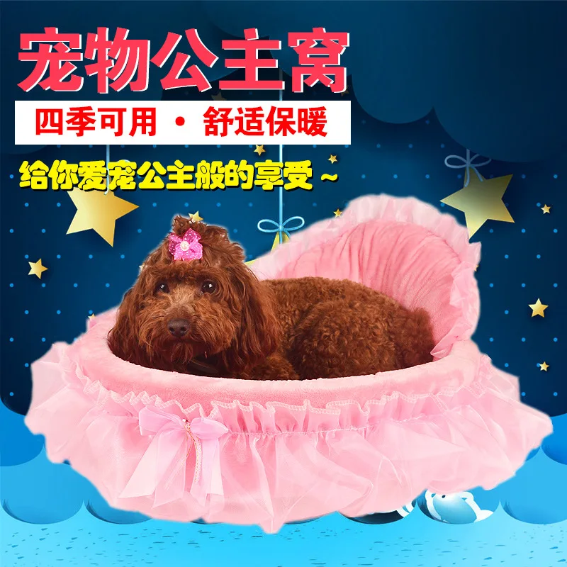 Good High Quality Cushion Flannel Dog Cat Cozy Beds Princess Lace Bowknot Comfortable Kennel Mat Pad Puppy Sleeping Bag Pet Supplies offers